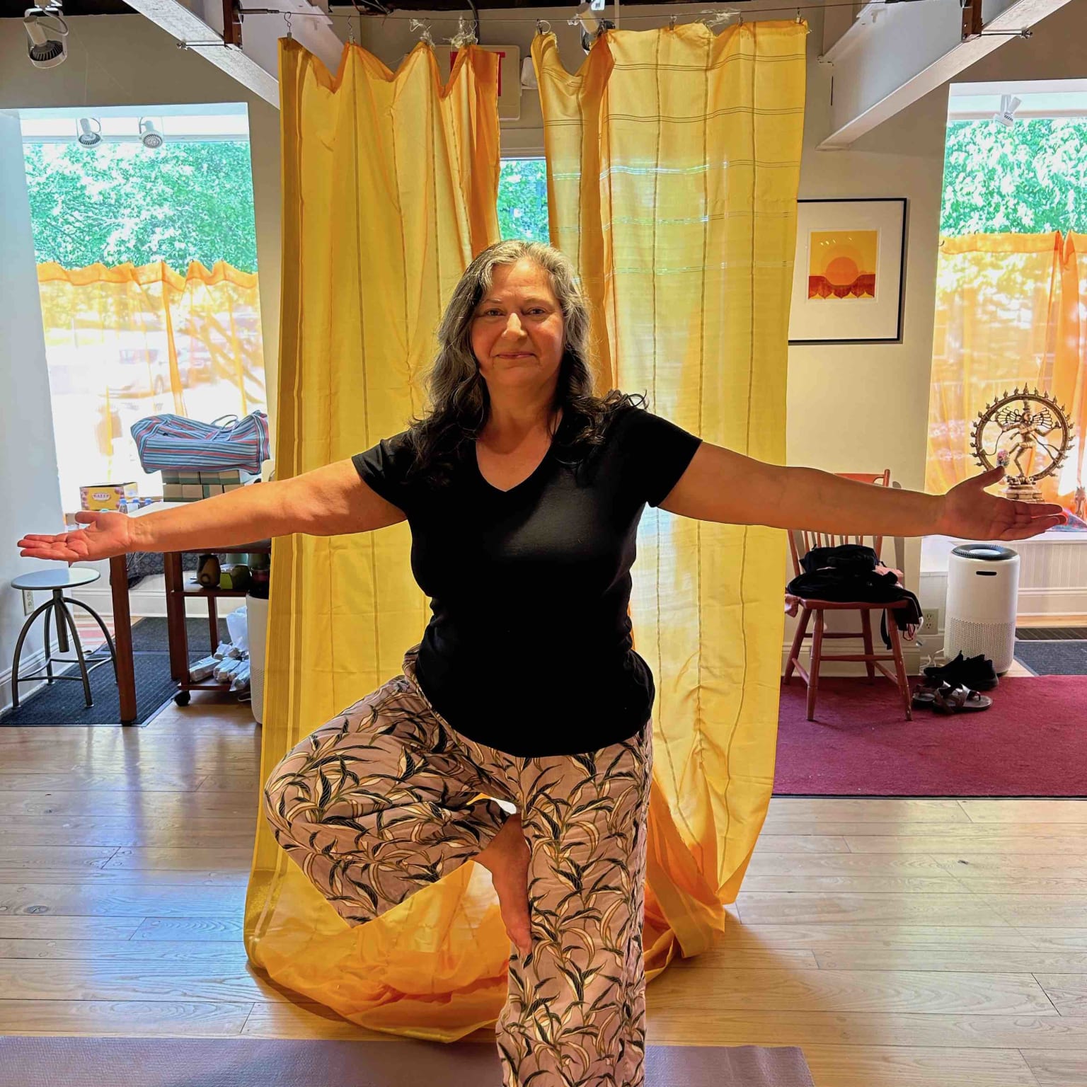 Trained as a Kripalu Yoga teacher, her teaching focuses on building a healthier life both in mind and body on and off the mat.